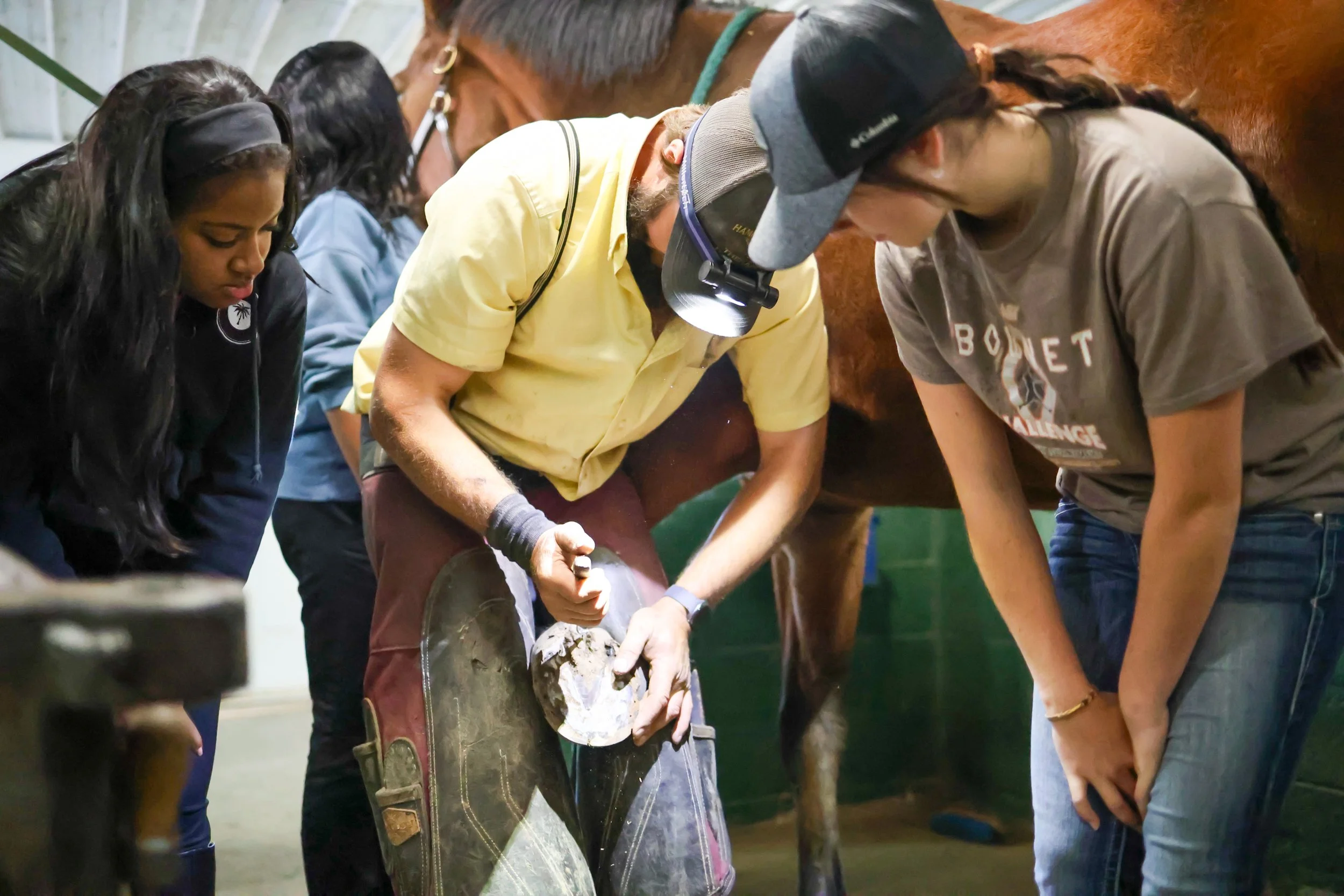 Afternoons shift to Equine Science Concentration micro-credentialing classes, where students dive into equine anatomy, grooming, farrier science, small-business math, stable management, and more. The purpose is simple: to develop practical skills, build confidence, and form connections that lead to future pathways.